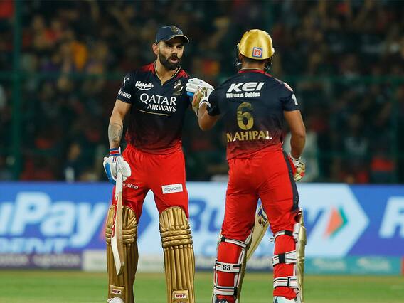 पण विराट कोहली आणि महिपाल लोमरोर यांनी आरसीबीचा डाव सावरला. दोघांनी चौफेर फटकेबाजी करत विजयाकडे आगेकूच केली. चौथ्या विकेटसाठी दोघांनी ३४ चेंडूत ५५ धावांची भागिदारी केली. आरसीबीची ही सर्वात मोठी भागिदारी होय.. त्याशिवाय इतर कोणताही मोठी भागिदारी झाली नाही. महिपाल लोमरोर याने १८ चेंडूत ३४ धावांची खेळी केली. या खेळीत त्याने तीन षटकार आणि एक चौकार लगावला. लोमरोर बाद झाल्यानंतर विराट कोहलीही लगेच तंबूत परतला विराट कोहलीने सहा चौकारासह ५४ धावांची खेळी केली. विराट कोहली बाद झाल्यानंतर आरसीबीची फलंदाजी पुन्हा ढेपाळली. दिनेश कार्तिक याने २२ धावांचे योगदान दिले. पण तो संघाला विजय मिळवून देऊ शकला नाही. सुयेश प्रभुदेसाई याने दहा धावांचे योगदान दिले. हसरंगा, विली आणि वैशाक यांनी आरसीबीचा मोठा पराभव टाळला.