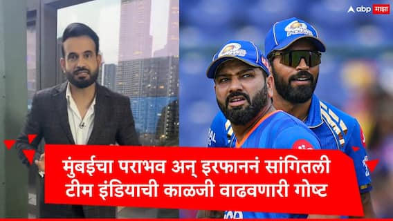 इरफान पठाण यानं मुंबई इंडियन्स आणि टीम इंडियाची काळजी वाढवणारी गोष्ट सांगितली आहे. हार्दिक पांड्या आणि रोहित शर्मा या दोघांचा फॉर्म मुंबई आणि टीम इंडियासाठी चिंतेची बाब आहे. ते दोघेही लवकरच कमबॅक करु शकतात, अशी आशा करु या, असं इरफान पठाण यानं म्हटलं. आगामी टी-20 वर्ल्ड कपपूर्वी रोहित शर्मा आणि हार्दिक पांड्या यांचा आयपीएलमधील फॉर्म चिंतेचा विषय ठरतोय. याकडेच इरफान पठाण यानं लक्ष वेधलंय.