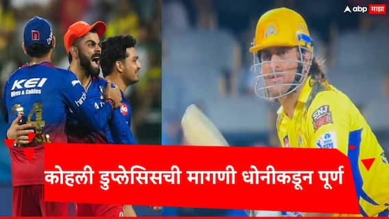 बंगळुरु : रॉयल चॅलेंजर्स बंगळुरु (Royal Challengers Bengalur) आणि चेन्नई सुपर किंग्ज (Chennai Super Kings) यांच्यातील मॅच मध्ये पावसानं व्यत्यय आणला होता. चेन्नईचा कॅप्टन ऋतुराज गायकवाडनं टॉस जिंकून पहिल्यांदा गोलंदाजी करण्याचा निर्णय घेतला होता. बंगळुरुच्या डावाला सुरुवात झाल्यानंतर तीन ओव्हर होताच पावसानं व्यत्यय आणला होता. बंगळुरुनं पहिल्यांदा फलंदाजी करताना 5 विकेटवर 218 धावा केल्या. चेन्नई सुपर किंग्ज फलंदाजी करत असताना आरसीबीच्या गोलंदाजांना दवबिंदू पडत असल्यानं हवी तशी गोलंदाजी करता येत नव्हती.यामुळं आरसीबीचा कॅप्टन फाफ डु प्लेसिस (Faf Du Pleissis)आणि विराट कोहली (Virat Kohli) पंचांकडे वारंवार बॉल बदलण्याची मागणी करत होते. पंचांनी दोघांची मागणी धुडकावली होती. मात्र, महेंद्रसिंह धोनीनं (MS Dhoni) ती मागणी पूर्ण केली. धोनीनं एका सिक्सनं ही मागणी पूर्ण केली.