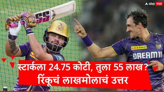 आयपीएलमध्ये मिशेल स्टार्कला (Mitchell Starc) 24.75 कोटी रुपये मिळतात अन् तुला 55 लाख रुपये मिळतात असा प्रश्न रिंकू सिंगला विचारण्यात आला होता. रिंकू सिंगनं जेवढे पैसे मिळतात त्यात समाधानी असल्याचं म्हटलं. दैनिक जागरणला दिलेल्या मुलाखतीत रिंकू सिंगला याबाबत प्रश्न विचारण्यात आला होता. रिंकून आयपीएलमधील मानधनाबाबत बोलताना म्हटलं की 50-55 लाख देखील खूप होतात, जेव्हा क्रिकेट खेळण्यास सुरुवात केली होती त्यावेळी इतके पैसे कमवू असा विचार केला नव्हता. ज्यावेळी लहान मुलं होतो, त्यावेळी 5-10 रुपये मिळायचे ते कसेही मिळावेत, असं वाटायचं. आता 55 लाख मिळतात हे खूप आहेत. देव जितकं देतोय त्यामध्ये खुश राहिलं पाहिजे, असं माझं मतं असल्याचं रिंकू सिंग म्हणाला.