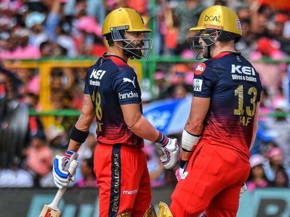 RR vs RCB, IPL 2023 : फाफ डु प्लेलिस आणि मॅक्सवेल यांच्या अर्धशतकी खेळीच्या बळावर आरसीबीने पाच विकेटच्या मोबदल्यात १७१ धावांपर्यंत मजल मारली. फाफ डु प्लेसिसने संयमी अर्धशतक झळकावले, तर मॅक्सवेल याने वादळी अर्धशतक झळकावले. अखेरच्या षटकात अनुज रावतने वादळी फलंदाजी करत आरसीबीचा डाव १७१ पर्यंत पोहचवला. राजस्थानला विजयासाठी १७२ धावांचे आव्हान दिलेय. आज पराभूत होणाऱ्या संघाचे प्लेऑफमधील आव्हान जवळपास संपुष्टात येणार आहे. त्यामुळे दोन्ही संघासाठी आजचा सामना महत्वाचा आहे. नाणेफेक जिंकून आरसीबीचा कर्णधार फाफ डु प्लेसिस याने फलंदाजी करण्याचा निर्णय घेतला. राजस्थानच्या संघात तीन फिरकी गोलंदाज होते.. राजस्थानच्या गोलंदाजीपुढे आरसीबीच्या फलंदाजांनी संथ सुरुवात केली. विराट कोहली आणि फाफ डु प्लेसिस यांनी संयमी फलंदाजी केली. सात षटकात दोघांनी ५० धावांची सलामी दिली. केएम आसिफ याने विराट कोहलीला बाद करत आरसीबीला पहिला धक्का दिला. विराट कोहलीने १९ चेंडूत १८ धावांची खेळी केली. यामध्ये विराटने एक चौकार लगावला. विराट कोहली बाद झाल्यानंतर फाफ डु प्लेसिसने मॅक्सवेलच्या साथीने डाव आरसीबीचा डाव सावरला. दुसऱ्या विकेटसाठी दोघांनी ६९ धावांची भागिदारी केली.