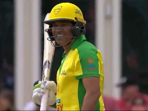 मुख्य सामन्याच्या ब्रेकमध्ये प्रेक्षकांना सचिन आणि ऑस्ट्रेलियाच्या महिला गोलंदाजामधलं द्वंद्व पाहायला मिळालं. सचिननं एलिस पेरीच्या पहिल्या चेंडूवर चौकार ठोकून आपल्या चाहत्यांना खूश केलं.