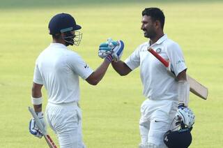 मुरली विजयने कसोटी कारकीर्दीतलं दहावं शतक साजरं केलं. त्याने 221 चेंडूंत 128 धावांची खेळी केली. यात त्याने 11 चौकार आणि एका षटकाराचा समावेश आहे. त्याचबरोबर पुजारानही 284 चेंडूंत तेरा चौकारांसह नाबाद 121 धावांची खेळी उभारली. पुजाराचं कारकीर्दीतलं हे 14 वं कसोटी शतक ठरलं. या दोघांनी मिळून दुसऱ्या विकेटसाठी 209 धावांची महत्वपूर्ण भागिदारी रचली.