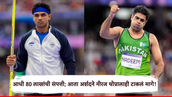 अर्शद नदीमच्या संपत्तीत सातत्याने वाढ होत आहे. अर्शद नदीमला पाकिस्तानच्या मुख्यमंत्र्यांपासून ते महापौरांपर्यंत अनेकांनी बक्षीस दिले आहेत. आता अर्शद नदीमची संपत्ती भारताच्या नीरज चोप्रापेक्षा जास्त असल्याचा दावा चाहते सातत्याने करत आहेत. टोकियो ऑलिम्पिकमध्ये सुवर्णपदक आणि पॅरिस ऑलिम्पिकमध्ये रौप्यपदक जिंकणाऱ्या भारताच्या नीरज चोप्राची एकूण संपत्ती 37 कोटी रुपये आहे. नीरजकडे अनेक महागड्या कार आणि बाइक्स आहेत.