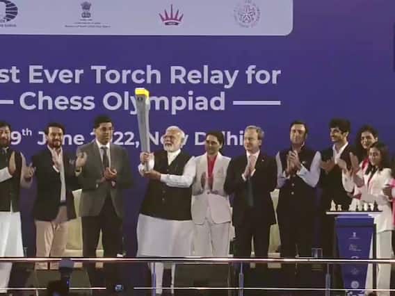 44th Chess Olympiad : पंतप्रधान नरेंद्र मोदी यांनी 44 व्या बुद्धिबळ ऑलिम्पियाडसाठी ऐतिहासिक मशाल रिलेचा प्रारंभ केला. नवी दिल्लीच्या इंदिरा गांधी क्रीडा मैदानावर हा कार्यक्रम पार पडलाय. भारत पहिल्यांदाच बुद्धिबळ ऑलिम्पियाडचे यजमानपद भूषवत आहे. ऑलिम्पिकच्या धर्तीवर बुद्धिबळ ऑलिम्पियाडमध्ये प्रथमच मशाल रिले करण्यात आली. या स्पर्धेद्वारे बुद्धिबळ ऑलिम्पियाडचे भविष्यातील सर्व मशाल रिले भारतातून होणार सुरू आहे. यावेळी पंतप्रधान नरेंद्र मोदी यांनी उपस्थितांना मार्गदर्शन केले.