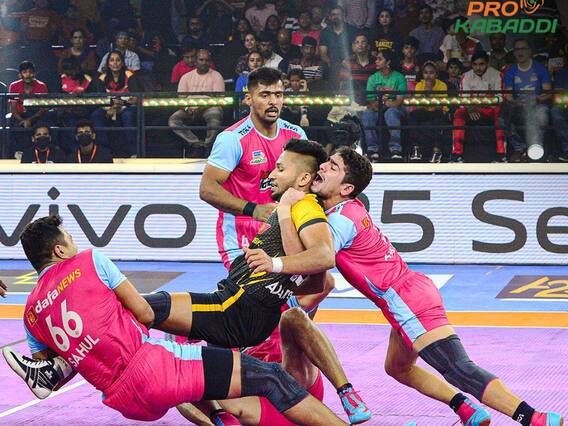 दिवसाचा दुसरा सामना जयपूर पिंक पँथर्स आणि तेलुगू टायटन्स यांच्यात झाला. या सामन्यात पुन्हा एकदा तेलुगू टायटन्स संघाची निराशाजनक कामगिरी पाहायला मिळाली. जयपूरनं हा सामना मोठ्या फरकानं जिंकला आणि या हंगामातील सलग पाचवा विजय मिळवला. त्यानंतर तिसऱ्या आणि अखेरच्या सामन्यात गुजरात जायंट्सनं हरियाणा स्टीलर्सला पराभवाची धुळ चारली. हा हरियाणाचा सलग चौथा पराभव ठरला.