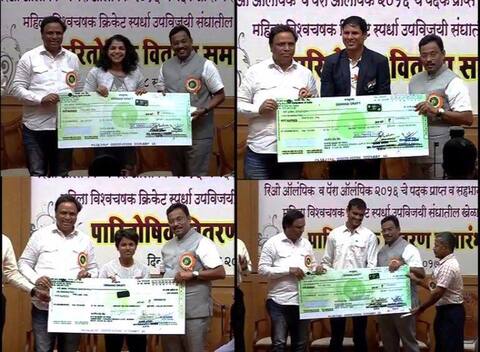 मुंबई : रिओ ऑलिम्पिक, रिओ पॅरालिम्पिक आणि महिला विश्वचषकात उल्लेखनीय कामगिरी बजावणाऱ्या भारतीय खेळाडूंसह, या स्पर्धांमध्ये सहभागी झालेल्या महाराष्ट्राच्या खेळाडूंचा राज्य शासनाच्या वतीने गुरुवारी दुपारी विशेष गौरव करण्यात आला. या खेळाडूंना राज्य शासनाच्या वतीने रोख इनाम देऊन त्यांचा सन्मान करण्यात आला. रिओ ऑलिम्पिकच्या कांस्यपदक विजेत्या पैलवान साक्षी मलिकसह ललिता बाबर, दत्तू भोकनळ, देविंदर वाल्मिकी, कविता राऊत, आयोनिका पॉल या महाराष्ट्राच्या खेळाडूंचा सत्कारार्थींमध्ये समावेश होता. रिओ पॅरालिम्पिकमधल्या पदकविजेत्या मरियप्पन थंगावेलू, देवेंद्र झाझरिया, दीपा मलिक आणि वरुण भाटी यांच्यासह महाराष्ट्राच्या सुयश जाधवलाही रोख इनामाने सन्मानित करण्यात आलं. भारताला महिला विश्वचषकाची अंतिम फेरी गाठून देणाऱ्या महाराष्ट्राच्या पूनम राऊत, स्मृती मानधना आणि मोना मेश्राम यांचाही रोख इनामांच्या यादीत समावेश होता.