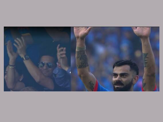 किंग कोहलीनं शतक केल्यानंतर वानखेडे मैदानात उपस्थित असलेल्या सचिन तेंडुलकरला मानाचा मुजरा केला. सचिननं सुद्धा मानाचा मुजरा स्वीकारत अभिवादन केलं.