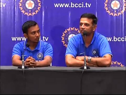 मुंबई : विश्वचषक जिंकून मायदेशी परतलेल्या अंडर-19 टीम इंडियाचं मुंबईत जंगी स्वागत करण्यात आलं. न्यूझीलंडमध्ये झालेल्या अंडर-19 विश्वचषक विजेत्या पृथ्वी शॉच्या युवा टीम इंडियाचं मुंबईत आगमन झालं. मुंबई विमानतळावर भारताच्या या युवा शिलेदारांचं जल्लोषात स्वागत करण्यात आलं. यावेळी पृथ्वी शॉचं हार घालून आणि पेढा भरवून स्वागत करण्यात आलं. भारतीय अंडर-19 संघाने विश्वचषकाच्या अंतिम सामन्यात ऑस्ट्रेलियाचा आठ विकेट्सनी धुव्वा उडवला होता. या विजयासह भारताने चौथ्यांदा अंडर-19 विश्वचषकावर आपलं नाव कोरलं होतं. याआधी मोहम्मद कैफ, विराट कोहली आणि उन्मुक्त चंदच्या नेतृत्वाखाली भारताने अंडर-19 विश्वचषक पटकावला होता. टीम इंडियाचे प्रशिक्षक राहुल द्रविड आणि पृथ्वी शॉ यांनी पत्रकार परिषद घेऊन पत्रकारांच्या प्रश्नांना उत्तरं दिली. खेळातील सातत्य राखत विश्वचषक जिंकण्यापर्यंतचा अनुभव कसा होता, याचं उत्तरही पृथ्वी शॉने दिलं.