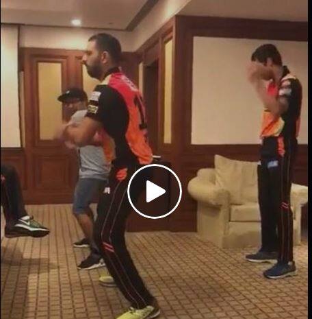 मुंबई: आयपीएलच्या दहाव्या मोसमाच्या सलामीच्या सामन्यात सनरायझर्स हैदराबादच्या विजयाचा शिल्पकार ठरला तो म्हणजे सिक्सर किंग युवराज सिंह. युवराजने रॉयल चॅलेंजर्स बंगळुरुविरुद्धच्या सामन्यात 27 चेंडूत 62 धावा केल्या. त्यामुळे त्याला मॅन ऑफ द मॅच पुरस्काराने गौरवण्यात आलं. युवराजने आपल्या खेळीत 7 चौकार आणि 3 षटकार ठोकले. या सामन्यानंतर युवराजने आपल्या संघसहकाऱ्यांसोबत डान्स करुन जल्लोष केला. युवराजने हॉटेलमध्ये डान्स केला. युवराजच्या याच जल्लोषाचा व्हिडीओ हरभजन सिंहने फेसबुकवर अपलोड केला आहे. या व्हिडीओत युवराजच्या मागे आशिष नेहराही डान्स स्टेप करताना दिसत आहे.