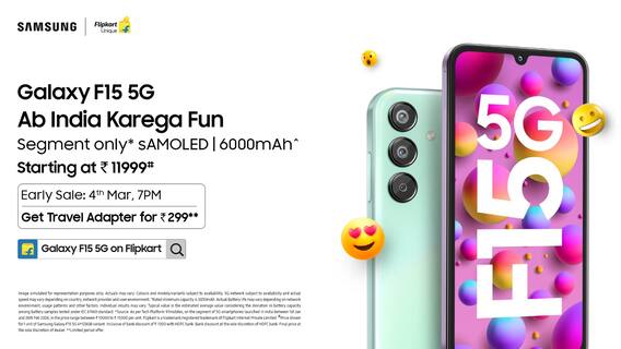 या तीन आकर्षक कलरमध्ये उपलब्ध असलेला गॅलॅक्सी एफ15 5जी 4 जीबी + 128 जीबी आणि 6 जीबी + 128 जीबी स्टोरेज व्हेरिएण्ट्समध्ये येतो. हा स्मार्टफोन 11 मार्चपासून फ्लिपकार्ट, Samsung.com वर आणि निवडक रिटेल स्टोअर्समध्ये उपलब्ध असेल.