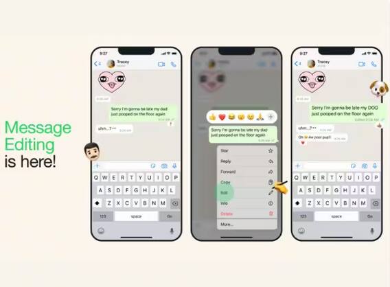WhatsApp Edit Message Feature : व्हॉट्सअॅप (WhatsApp) या इन्स्टंट चॅटिंग अॅपवर ज्या फीचरची युझर्स आतुरतेने वाट पाहत होते, ते अखेर त्यांच्यासाठी उपलब्ध झालं आहे. कंपनीने आपल्या यूजर्ससाठी मेसेज एडिट करण्याचा पर्याय आणण्यास सुरुवात केली आहे. सध्या हे फीचर काही लोकांच्याच अॅपवर दिसत आहे. लवकरच हे फीचर सगळ्यांच्या व्हॉट्सअॅपमध्ये उपलब्ध होईल. जर तुम्हाला अपडेट मिळत नसेल तर तुम्ही प्लेस्टोअरवर जाऊन व्हॉट्सअॅप अपडेट करु शकता. या फीचरच्या मदतीने यूजर्स चुकीचे टाईप झालेले किंवा पाठवलेले अपूर्ण मेसेज एडिट करु शकतात. परंतु यासाठी विशिष्ट कालमर्यादा देखील आहे.