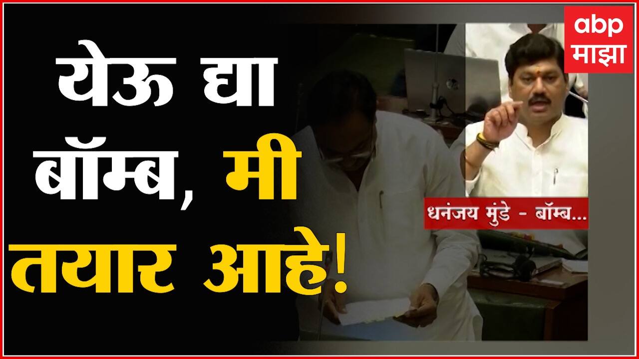 Dhananjay Munde: राष्ट्रवादीचे मंत्री धनंजय मुंडे यांचा सभागृहातील एक व्हिडीओ व्हायरल झालाय. मुंडे खाणाखुणा करून कुणालातरी बॉम्ब बद्दल विचारणा करताना दिसतायत. विरोधी बाकाकडे पाहून आज कोणता बॉम्ब अशी विचारणा ते करतायत... बर एवढ्यावरच ते थांबले नाहीत. तर त्यांनी येऊदे बॉम्ब आम्ही तयार आहोत.. असा आवेश दाखवत शड्डूही ठोकला आहे.
