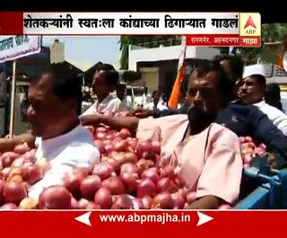 शेतकऱ्यांचं अनोखं आंदोलन, स्वत:ला कांद्याच्या ढिगाऱ्यात गाडलं!