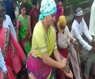 Navneet Kaur Rana | खासदार नवनीत कौर राणा जेव्हा बांधावर जाऊन पेरणी करतात! | अमरावती | ABP Majha