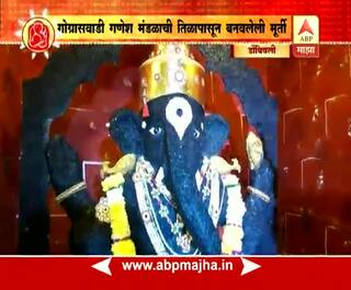 डोंबिवलीच्या गोग्रासवाडीत सार्वजनिक मंडळाने यंदा तिळापासून बनलेली गणेशमूर्ती बसवली आहे. काळ्या तिळापासून बनवलेल्या या मूर्तीला विठ्ठलाचं रुप देण्यात आलं आहे. त्यामुळे ही मूर्ती सगळ्यांचं लक्ष वेधून घेत आहे. गणपतीची ही चार फुटांची मूर्ती आहे. बाप्पांच्या आजूबाजूला असेलेली संपूर्ण आरासही इकोफ्रेंडली करण्यात आली आहे.