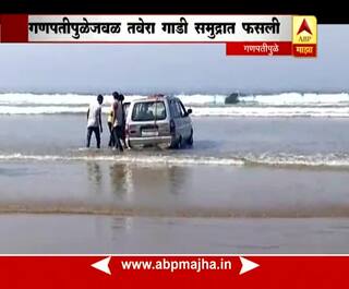 रत्नागिरी : पर्यटकांचा अतिउत्साह, गणपतीपुळेजवळ कार समुद्रात अडकली