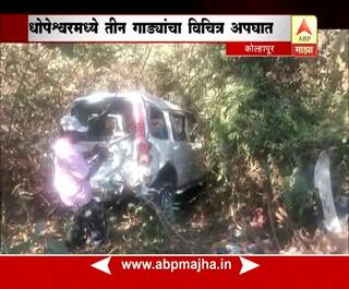 कोल्हापूर : धोपेश्वरमध्ये तीन गाड्यांचा विचित्र अपघात