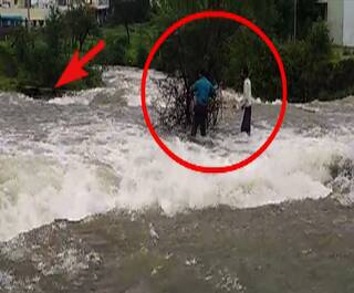 कोल्हापूरच्या कळंबा तलावाच्या प्रवाहात अडकलेल्या दोघांना वाचवलं