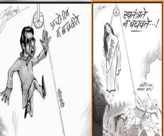 प्रजासत्ताक दिनाच्या पार्श्वभूमीवर मनसे आणि भाजपमध्ये व्यंगचित्र वॉर पाहायला मिळालं... मनसे अध्यक्ष राज ठाकरे यांनी व्यंगचित्रातून पंतप्रधान नरेंद्र मोदी आणि भाजपाचे राष्ट्रीय अध्यक्ष अमित शाह यांच्यावर निशाणा साधला आहे. स्वतंत्रते न बघवते असं शीर्षक या व्यंगचित्राला देण्यात आलं.. मोदी आणि शाह हे दोघे लाल किल्ल्यावर लोकशाहीला फासावर लटकवत असल्याचं व्यंगचित्रातून दाखवण्यात आलं आहे. राज ठाकरेंच्या या व्यंगचित्रानं सोशल मीडियावर धुमाकूळ घातला...मात्र राज ठाकरे यांच्या आजच्या व्यंगचित्रात बाळासाहेब ठाकरे यांनी तब्बल 39 वर्षांपूर्वी काढलेल्या व्यंगचित्राची झलक दिसत आहे. बाळासाहेबांचे हे व्यंगचित्र 21 सप्टेंबर 1980 च्या मार्मिक अंकामध्ये प्रसिद्ध झाले होते.