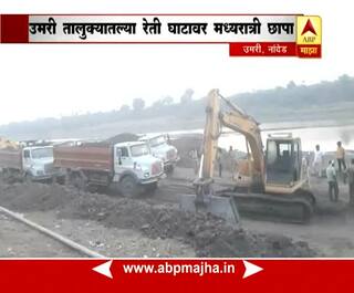 नांदेडच्या उमरी तालुक्यातली रेती घाटावर मध्यरात्री पोलिसांनी छापा टाकला. यात १ पोकलँड, ५ मोटरसायकलसह तब्बल १ हजार ब्रास वाळूचा साठा जप्त करण्यात आला आहे.