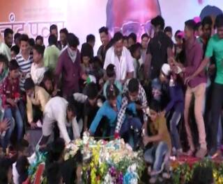 परळीतील शरद पवारांच्या वाढदिवसानिमित्त आयोजित कार्यक्रमात केक खाण्यासाठी कार्यकर्त्यांची झुंबड