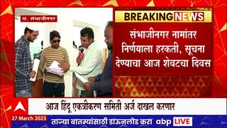 Sambhajinagar नामांतर निर्णयाला हरकती, सूचना देण्याचा शेवटचा दिवस, भाजपा अर्ज दाखल करणार : ABP Majha