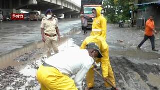 Bhiwandi Potholes : पावसामुळे भिवंडीतील रस्त्यांची चाळण, वाहतूक पोलिसांवर खड्डे भरण्याची वेळ