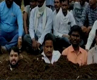 पावसामुळे शेतीचं नुकसान, दोन तासांपासून जमिनीत पुरुन घेत तुपकरांचं आंदोलन
