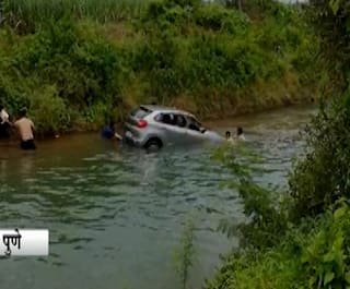 Car Drowned | चालकाचा ताबा सुटल्याने गाडी थेट कालव्यात,स्थानिकांच्या मदतीने पाचही जणांना बाहेर काढलं