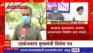 उद्योजकांचं मुख्यमंत्री शिंदेंना पत्र, नामांतराच्या वादाचे उद्योगांवर पडसाद. सध्याचं वातावरण जनतेत अस्वस्थता निर्माण करु शकते, पत्रातून चिंता व्यक्त
