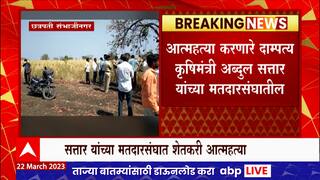 संपूर्ण महाराष्ट्रात गुढीपाडव्याचा जल्लोष सुरू असतानाच छत्रपती संभाजीनगरमध्ये शेतकरी दाम्पत्याने आत्महत्या केलीय... विशेष म्हणजे आत्महत्या करणारे शेतकरी दाम्पत्य कृषिमंत्री अब्दुल सत्तार यांच्या सोयगाव मतदारसंघातील महालबधा गावातील आहेत... संदीप आळेकर आणि लताबाई आळेकर अशी त्यांची नावे आहेत...