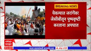 Manjo Jarange यांच्यावर पुष्पवृष्टी करताना कार्यकर्ते JCB मधून पडले खाली | Yeola