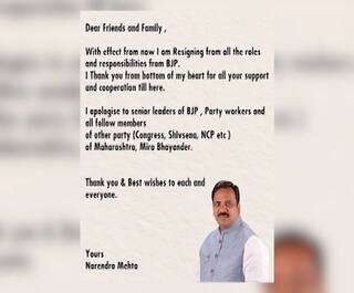 माजी आमदार नरेंद्र मेहता यांनी भाजपला रामराम ठोकला आहे. आपल्यामुळे पक्षाची बदनामी होत असल्याचा व्हिडिओ प्रसारित करून त्यांनी पक्षाचा राजीनामा दिला. 26 फेब्रुवारीला मिरा-भाईंदर महापालिकेच्या महापौर आणि उपमहापौरपदासाठी निवडणूक होणार आहे. मिरा-भाईंदर शहरात भाजपचा एक मेहता गट तर दुसरा विद्यमान आमदार गीता जैन यांचा गट आहे.