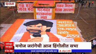मनोज जरांगे यांची आज हिंगोलीच्या दिग्रस फाट्यावर सभा होणार आहे. ११० एकरवर या सभेचे आयोजन करण्यात आलंय. सभेसाठी भव्य दिव्य स्टेज तयार करण्यात आला आहे. या स्टेज समोर १४०० चौरस फूट रांगोळी काढण्यात आली आहे. ८ तरुण आणि तरुणींनी २०० किलो रांगोळीचे रंग वापरुन जरांगे यांची हुबेहूब रांगोळी साकारली आहे. ड्रोनच्या साहाय्याने आढावा घेतला आहे आमचे प्रतिनिधी माधव दिपके यांनी