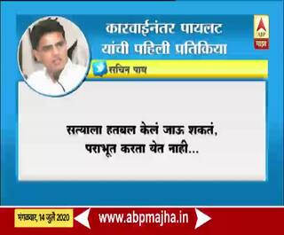 काँग्रेसने केलेल्या कारवाईनंतर सचिन पायलट यांनी पहिली प्रतिक्रिया दिली आहे. "सत्य को परेशान किया जा सकता है पराजित नहीं।" अवघ्या एका ओळीत सचिन पायलट यांनी ट्विटरवर आपल्या भावना व्यक्त केल्या आहेत. या कारवाईनंतर सचिन पायलट लवकरच आपली भूमिका मांडणार असल्याचं कळतं.