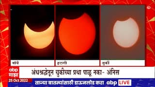 तब्बल २७ वर्षांनंतर भारतात दिवाळीत सूर्यग्रहणाचा योग जुळून आलाय.. या वर्षातील हे शेवटचे ग्रहण असेल..देशात सूर्यग्रहणाला सुरुवात झालीए,... आणि हे ग्रहण पाहण्याचा अनुभव सध्य़ा देशाच्य़ा कानाकोपऱ्यातून घेतला जातोय.... एबीपी माझाच्या कॅमेऱ्यातून तुम्ही घरबसल्या जगभरतील ग्रहणाची दृश्य पाहू शकताय... दुपारी ४.४९ मिनिटांनी खंडग्रास सूर्यग्रहणाला सुरुवात झाली आणि आता सूर्यग्रहण संपायला काही मिनिटं शिल्लक आहेत... ६.०९ मिनिटांनी सूर्यग्रहण संपेल... खगोलप्रेमी आणि छायाचित्रकारांनी सूर्यग्रहणाची दृश्य कॅमेऱ्यात कैद केली आहेत... देशाच्या वेगवेगळ्या ठिकाणांहून वेगवेगळ्या वेळी हे सूर्यग्रहण दिसलं...