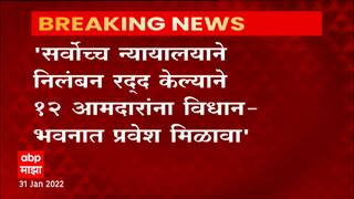 विधिमंडळाच्या पावसाळी अधिवेशनात भाजपाच्या 12 आमदारांना 1 वर्षांसाठी निलंबित केल्याच्या विरोधात 12 आमदारांतर्फे आमदार अँड आशिष शेलार यांनी सर्वोच्च न्यायालयात याचिका दाखल केली होती. या याचिकेवरील निकाल 28 जानेवारीला दिला असून सर्वोच्च न्यायालयाच्या तीन न्यायाधीशांच्या खंडपीठाने हे निलंबन अवैध ठरवून रद्द केले आहे.