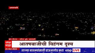 फटाके फोडण्यात अमरावती अव्वलचं म्हणावं लागेल. अमरावतीत यंदा दिवाळी दोन वर्षानंतर मोठ्या धुमधडाक्यात साजरी केल्या गेली. अमरावती शहरात दिवाळीच्या दिवशी रात्री मोठ्या प्रमाणात फटाके फोडण्यात आले... अमरावतीतील आतषबाजीची विहंगम दृश्य ड्रोनच्या माध्यमातून कैद करण्यात आली आहेत...