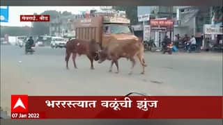 Beed: भररस्त्यात वळूंची झुंज, बघ्यांची गर्दी ABP Majha