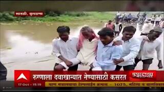 Buldhana : नदीवर पूल नसल्याने ग्रामस्थांचे हाल; रुग्णाला दवाखान्यात नेण्यासाठी कसरत