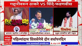 एकीकडे देवेंद्र फडणवीसांनी उद्धव ठाकरेंवर, तर दुसरीकडे उद्धव ठाकरेंनी शिंदे, फडणवीस, मोदी आणि अमित शाहांवर टीकेची झोड उठवली तर, तिसरीकडे एकनाथ शिंदेंनी उद्धव ठाकरेंना धारेवर धरलंय.. इतिहासात पहिल्यांदाच शिवसेनेचे दोन वर्धापन दिन साजरे करण्यात आले.. एक ठाकरेंचा, आणि दुसरा शिंदेंचा...ठाकरेंचा मेळावा षण्मुखानंद सभागृहात पार पडला तर शिंदेंचा मेळावा गोरेगावातील नेस्को सेंटरमध्ये पार पडला.. दोन्ही गटाकडून जोरदार शक्तिप्रदर्शन करण्यात आलंय.. याचबरोबर आरोप-प्रत्यारोपांनाही ऊत आला.. तर कल्याणमधील भाजपच्या मेळाव्यातून देवेंद्र फडणवीसांनीही ठाकरेंवर हल्लाबोल केला.