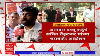 आमदार बच्चू कडूंचं सचिन तेंडुलकरच्या घराबाहेर आंदोलन. ऑनलाईन गेमिंगच्या जाहिरातींविरोधातबच्चू कडू आक्रमक. सर्व आंदोलक पोलिसांच्या ताब्यात.