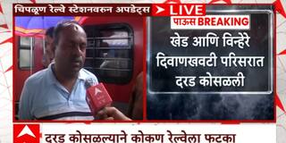 जोरदार पावसामुळे खेडानजीक दरड कोसळल्याने कोकण रेल्वेची वाहतूक रविवारी ठप्प झाली होती. त्यामुळे 13 पेक्षा अधिक तासांपासून कोकण रेल्वेचे प्रवासी अडकून पडले आहेत. कोकण रेल्वेमार्गावर (Konkan Railway) अनेक ठिकाणी एक्स्प्रेस ट्रेन जागच्या जागी उभ्या आहेत. यापैकी कोचीवेल्ली एक्स्प्रेस ट्रेन (Konakn Express Trains) गेल्या 13 तासांपासून चिपळूण स्थानकात उभी आहे. सुरुवातीला प्रवाशांना ही ट्रेन 4 तास उशिराने धावणार असल्याचे सांगण्यात आले होते. मात्र, सोमवारची सकाळ उजाडली तरी ही एक्स्प्रेस ट्रेन चिपळूण स्थानकातच उभी आहे. यामुळे कोकण रेल्वेच्या प्रवाशांकडून रोष व्यक्त केला जात आहे.