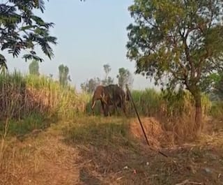 सेनापती कापशी गावात हत्तीचा धुमाकूळ, हत्ती आढळून आल्यानं नागरिकांमध्ये भीतीचं वातावरण
