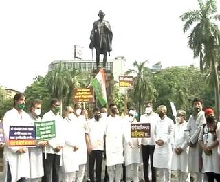 Hathras Case | हाथरसमधील पीडितेला न्याय द्या; मंत्रालयातील गांधी पुतळ्याजवळ काँग्रेसचं आंदोलन