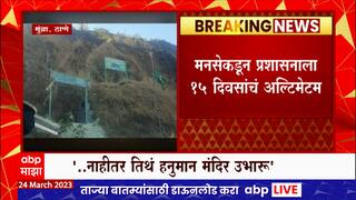 मुंब्रा डोंगरावरील अनधिकृत मशीद, दर्गे हटवा, मनसेची मागणी. मनसेकडून प्रशासनाला 15 दिवसांचा अल्टीमेटम. दर्ग न हटवल्यास त्या ठिकाणी हनुमान मंदिर उभारू, मनसेचे नेते अविनाश जाधव यांचा इशारा.