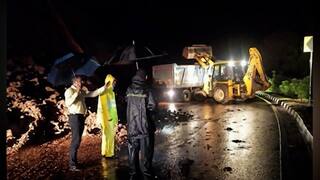 मुंबई-गोवा महामार्गावर नडगिवे घाटातल्या खारेपाटणजवळ दरड कोसळली, एकेरी मार्गाने वाहतूक सुरु
