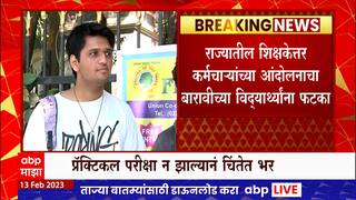 राज्यातील शिक्षकेतर कर्मचाऱ्यांच्या आंदोलनाचा बारावीच्या विद्यार्थ्यांना फटका बसलाय... आंदोलनामुुळे बारावी बोर्डाच्या प्रात्यक्षिक परीक्षा रखडल्या आहेत... बारावी बोर्डाची लेखी परीक्षा अवघ्या आठ दिवसांवर आलीये.. मात्र अद्याप अनेक विद्यार्थ्यांच्या प्रॅक्टिकल परीक्षा न झाल्याने विद्यार्थी चिंतेत आहेत... लॅब असिस्टंट उपलब्ध नसल्याने प्रात्यक्षिक परीक्षा घ्यायच्या कशा ? असा प्रश्न निर्माण शिक्षकांपूढे उभा राहिलाय.