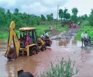 Parbhani | जिंतुर तालुक्यातील बेलुरा गावात धोकादायक प्रवास;पूल नसल्याने गावकऱ्यांचा जेसीबीतून प्रवास